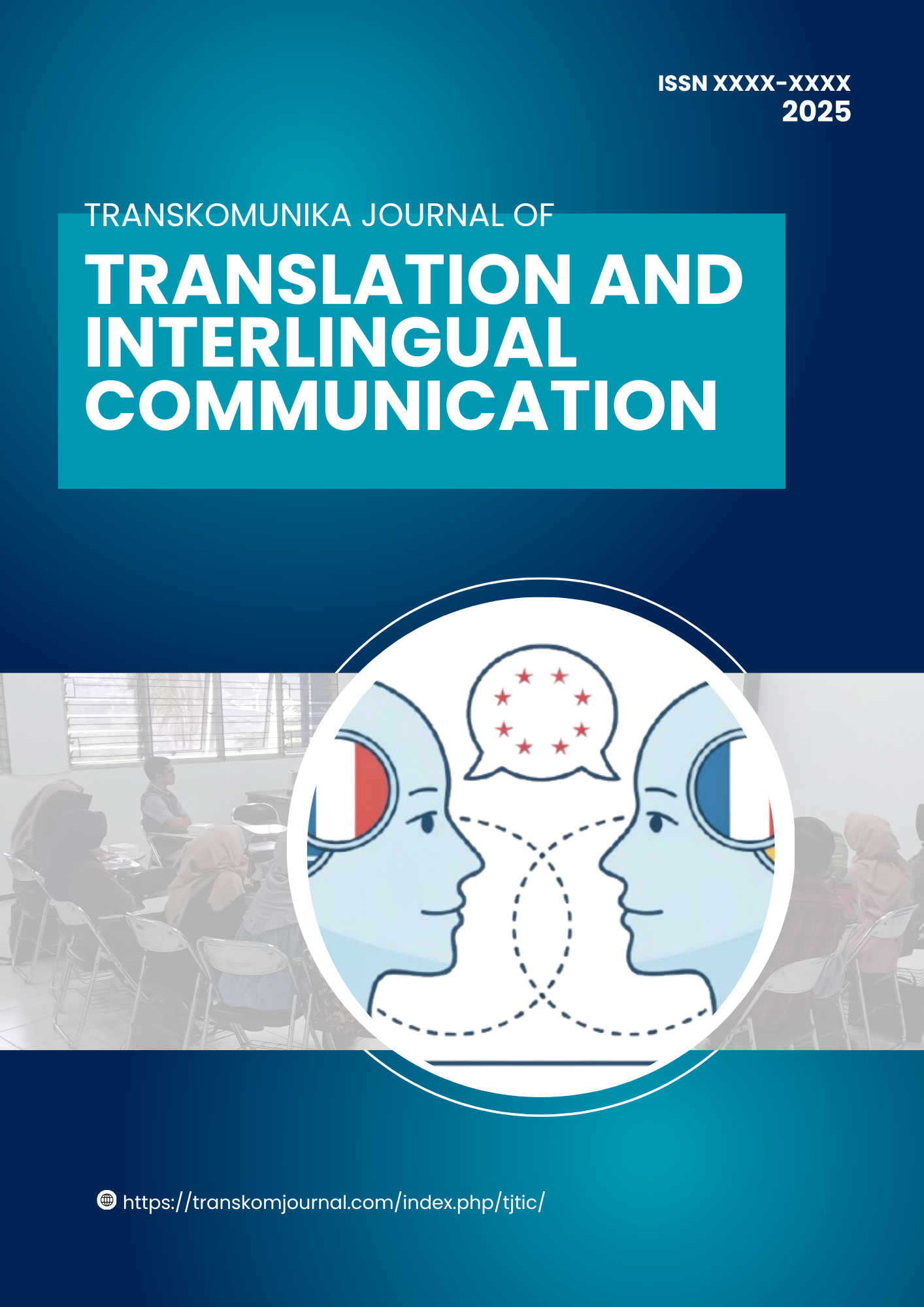 Transkomunika Journal of Translation and Interlingual Communication (TJTIC) is a peer-reviewed academic journal that publishes quality scholarly works in the fields of translation studies and intercultural communication. The journal welcomes original research articles, comprehensive review articles, insightful opinion articles, and other academic contributions that explore the dynamic intersections between language, culture, and communication across varied contexts.
